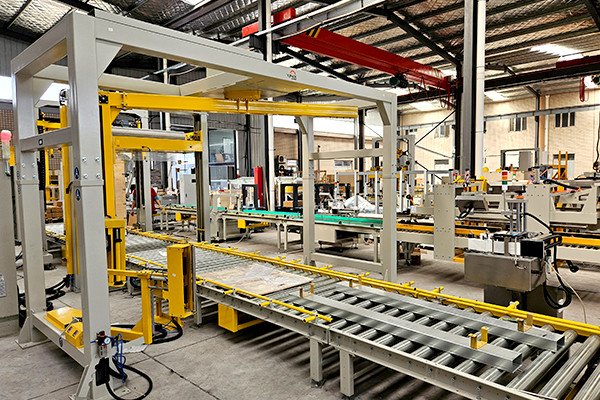 電動工具托盤碼垛通過式覆頂膜纏繞捆扎包裝線,是由自適應(yīng)型供棧機、機器人碼垛機、棧板穿劍捆扎機、通過式覆頂膜機以及搖臂式纏繞包裝機組合而成。自適應(yīng)型供棧機可根據(jù)不同托盤尺寸,自動調(diào)整機器并分配托盤,節(jié)省了人工換產(chǎn)的時間。