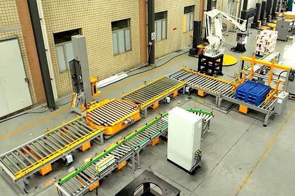 紙箱機器人碼垛在線纏繞包裝線是紙箱包裝領(lǐng)域非常常見的組合方式,該線體一般由碼垛機器人、自動供棧機、托盤輸送機以及在線纏繞包裝機組成,托盤在線纏繞機常見的有2種形式,一種是轉(zhuǎn)盤式一種是懸臂式,具體要根據(jù)貨物的狀態(tài)以及包裝效率來決定具體的選型。