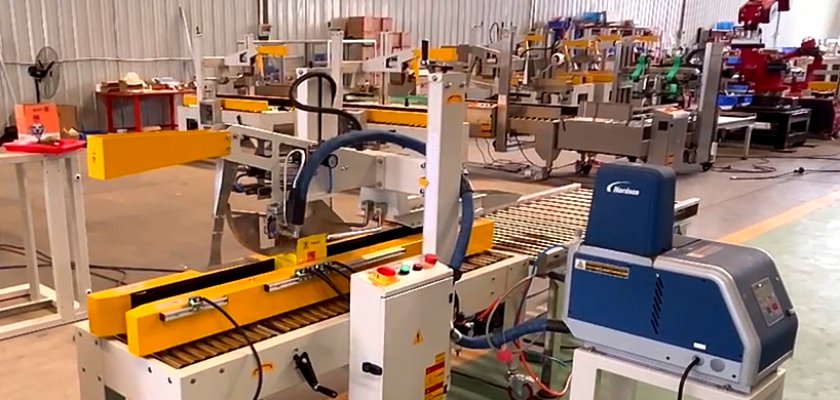 ?此款封箱機(jī)可單機(jī)使用,亦可配自動包裝線使用
