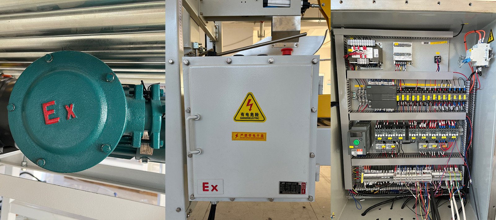 目前艾訊的主營(yíng)產(chǎn)品開(kāi)封箱機(jī)、打包機(jī)、纏繞機(jī)以及輸送機(jī)均可制作防爆機(jī)型。