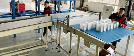 該項目主要由保鮮盒整理、套膜收縮、自動裝箱、自動封箱、金屬檢測、自動碼垛、自動輸送等7大部分組合而成。整線為無人化操作,包裝產(chǎn)能超過10萬件保鮮盒/小時。